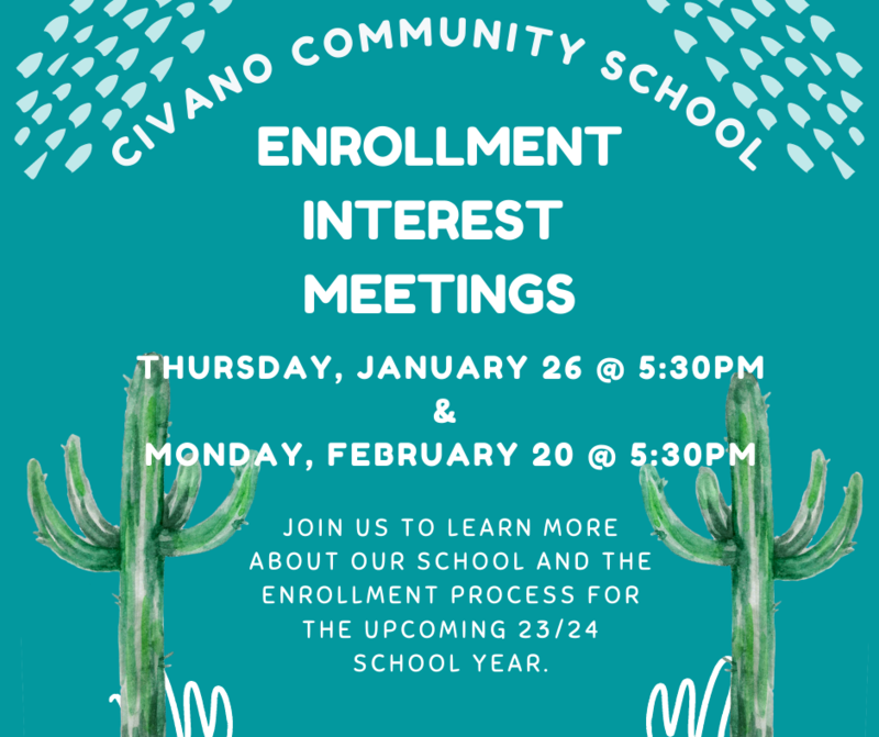 If a family does not have a child enrolled at Civano, they will need to attend one of Enrollment Interest Meetings we have scheduled in January or February. It is required to attend one of these meetings; if you do not, your child can only be placed on the waitlist after you have meet with the coordinator.