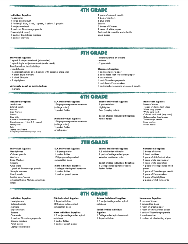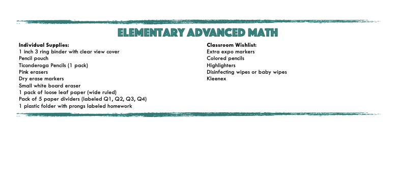 Esmond Station Supply List